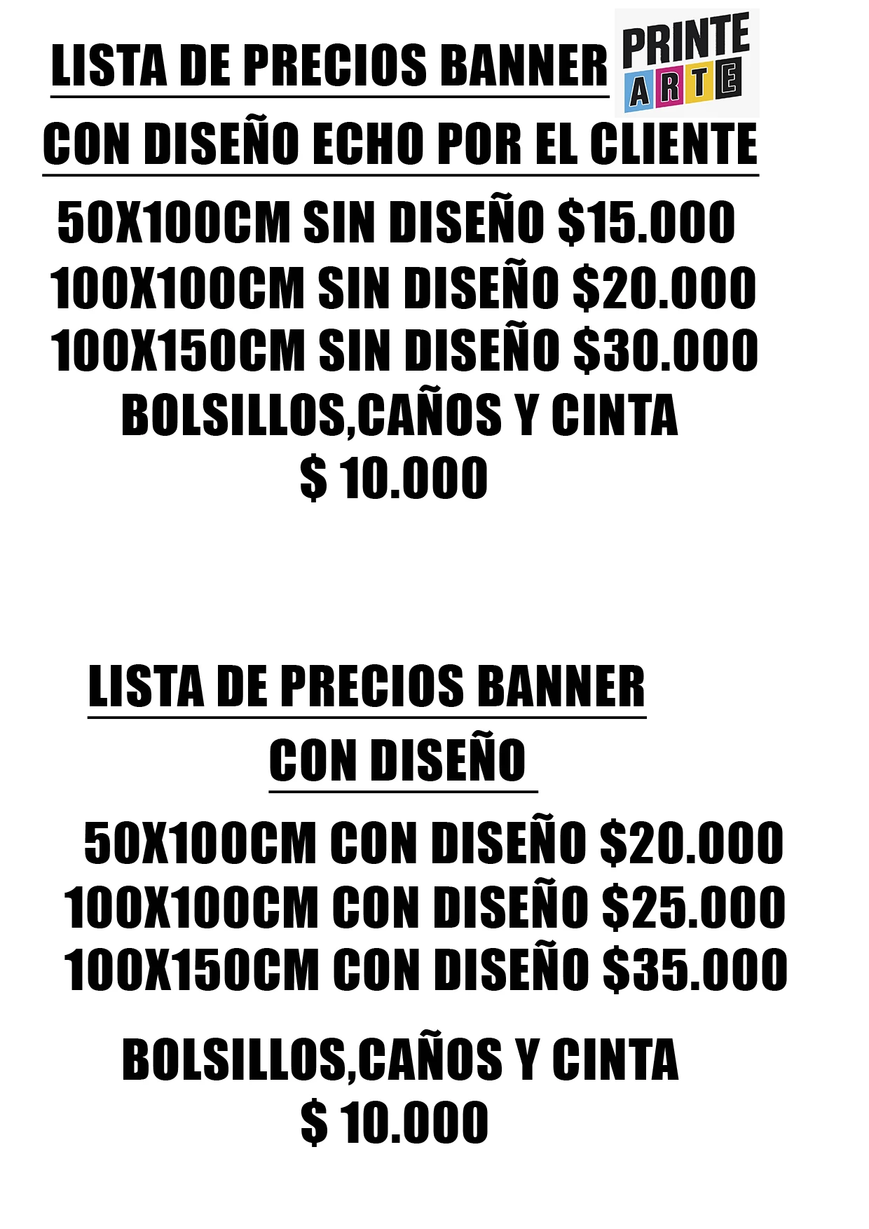 PRECIOS CON IMPRESIÓN Y CON O SIN ARMADO DEL DISEÑO